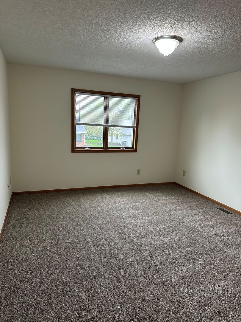 This two bedroom spacious townhouse style rental has a private front entrance and patio. Includes a 1 car attached garage and all appliances including full size washer/dryer- 1,200 square feet. 1 1/2 baths.